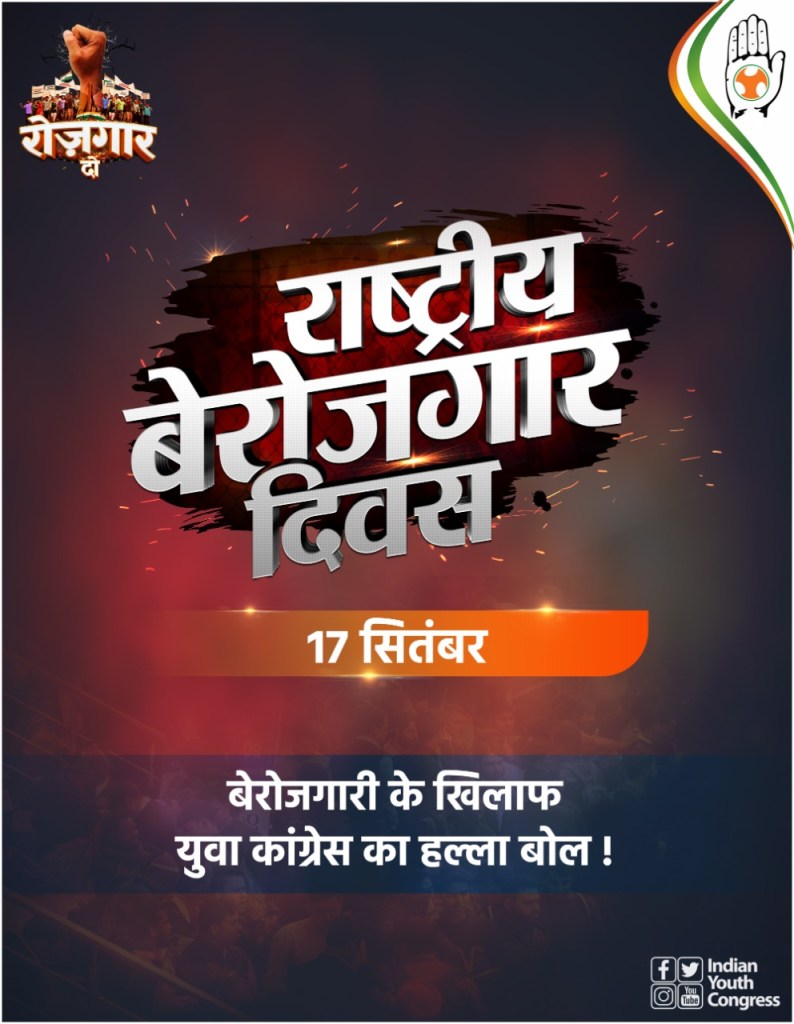 17 सितंबर को प्रधानमंत्री नरेंद्र मोदी (PM Narendra Modi) का जन्मदिन है. इस अवसर पर भारतीय युवा कांग्रेस ‘राष्ट्रीय बेरोजगारी दिवस’ मनाएगी.